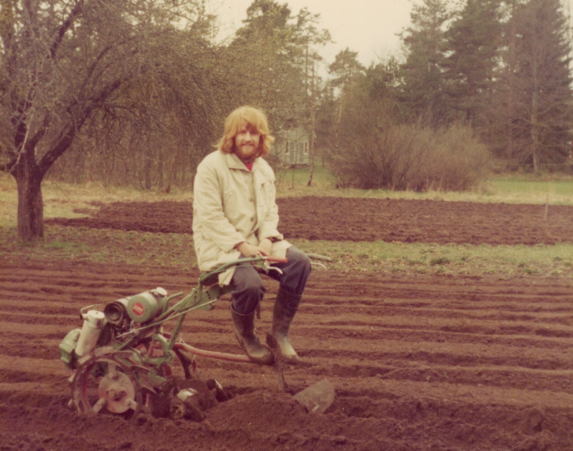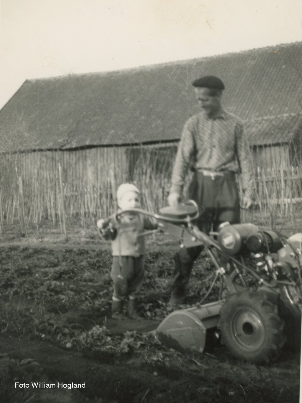 Min far köpte sig också en trädgårdstraktor som såg ut som ett monster och förde ett väldigt oväsen och som barn vrålade jag av skräck. Senare köpt far sig en fräs. På bilden ser ni mig sätta potatis med denna fräs. Min bror Tomas fick också tidigt lära sig köra fräsen.
