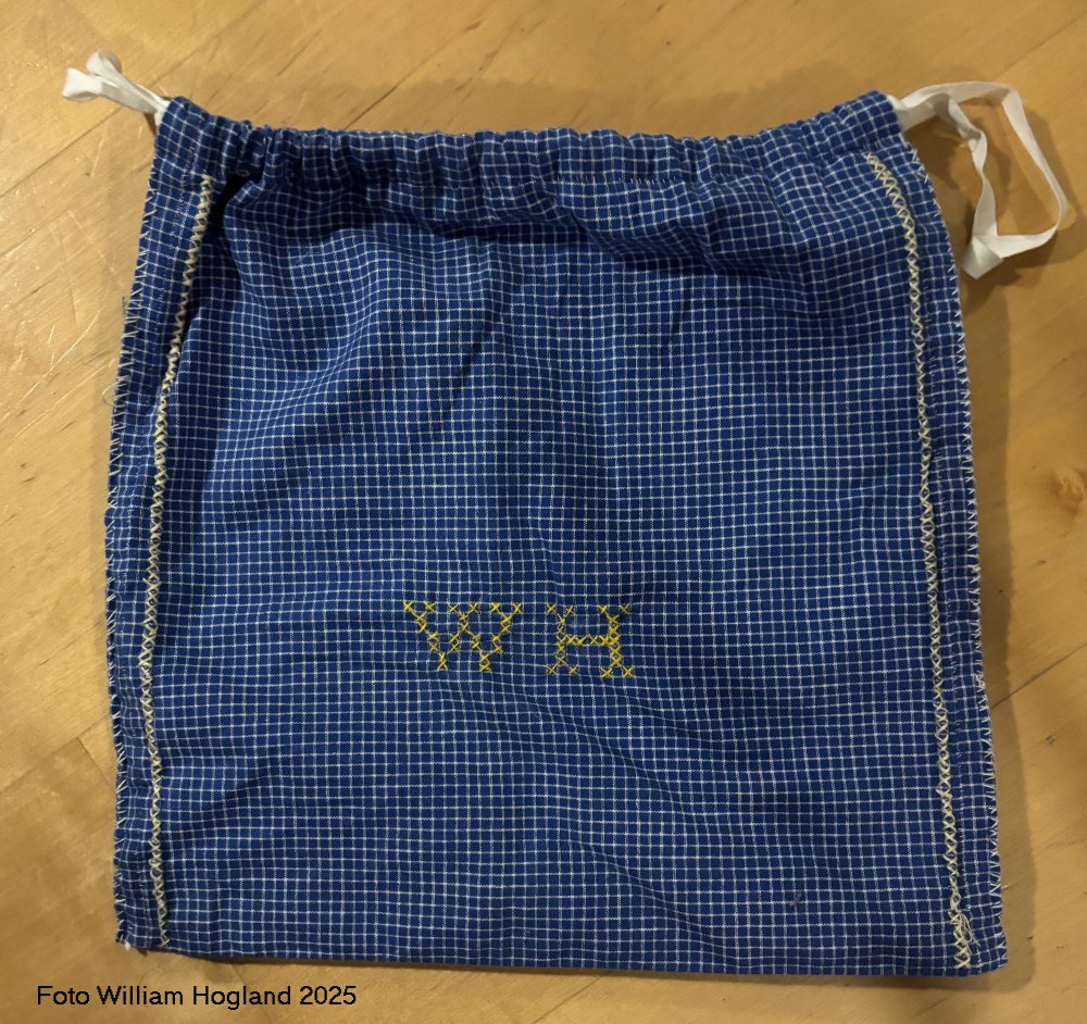 Vi hade också syslöjd vilket var nytt för pojkar. Det gick bättre och jag gjorde en gymnastikpåse som jag fortfarande har kvar”